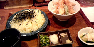 お昼どきなんで、天丼と冷たいうどんのセットをいただきました。